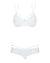 Le soutien-gorge, sans armature mais parfaitement ajusté, rehausse naturellement votre poitrine. Il se ferme dans le dos et se noue autour du cou, pour un maintien tout en légèreté. Sa forme triangle met en valeur le décolleté et ses détails en strass et petits nœuds satinés ajoutent juste ce qu’il faut de brillance.