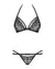 Laissez-vous envahir par l’allure sulfureuse de cet ensemble deux pièces au charme magnétique. Le soutien-gorge en triangle, orné d’une délicate dentelle florale et sublimé par des sangles coquines, souligne naturellement la poitrine pour un décolleté envoûtant. Son bijou brillant au centre attire les regards, ajoutant cette touche précieuse et irrésistible.